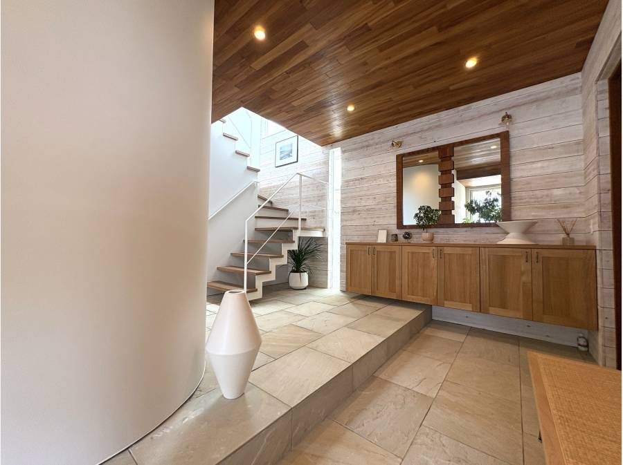丘の上に立つこの住まいでは、心地よい潮風を感じながら玄関を開けると、家族の声や香りが迎え入れてくれ、安らぎに包まれます。