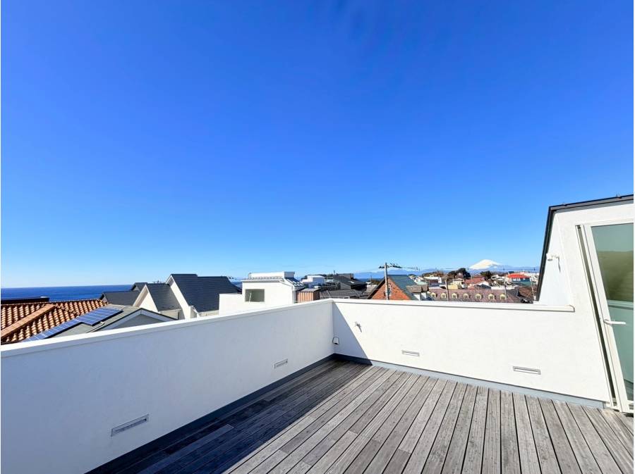広々としたルーフバルコニーでは、七里ガ浜や江の島、そして富士山まで見渡せます。