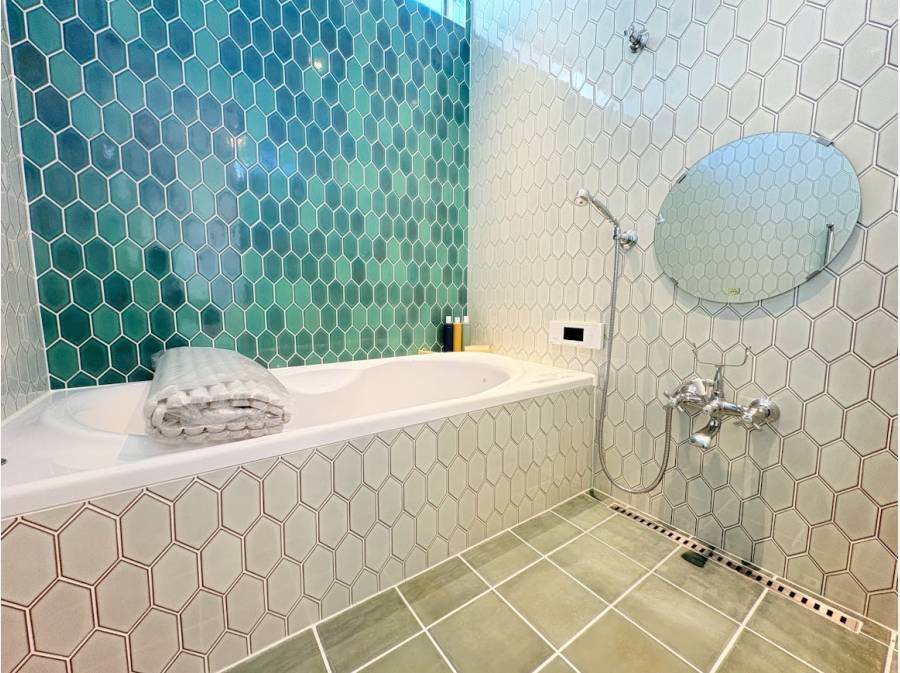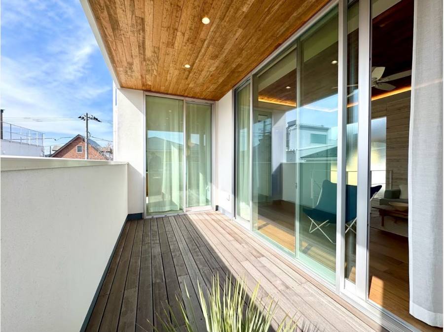 ・南向きの広々としたバルコニーにはアウトドアシャワーを設置。サーフィン後や散歩帰りに便利です。