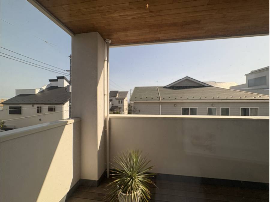 物件はプランナーの工夫により、敷地を有効活用。ガレージ上部にはデッキが設けられ、庭先として楽しめる設計です。