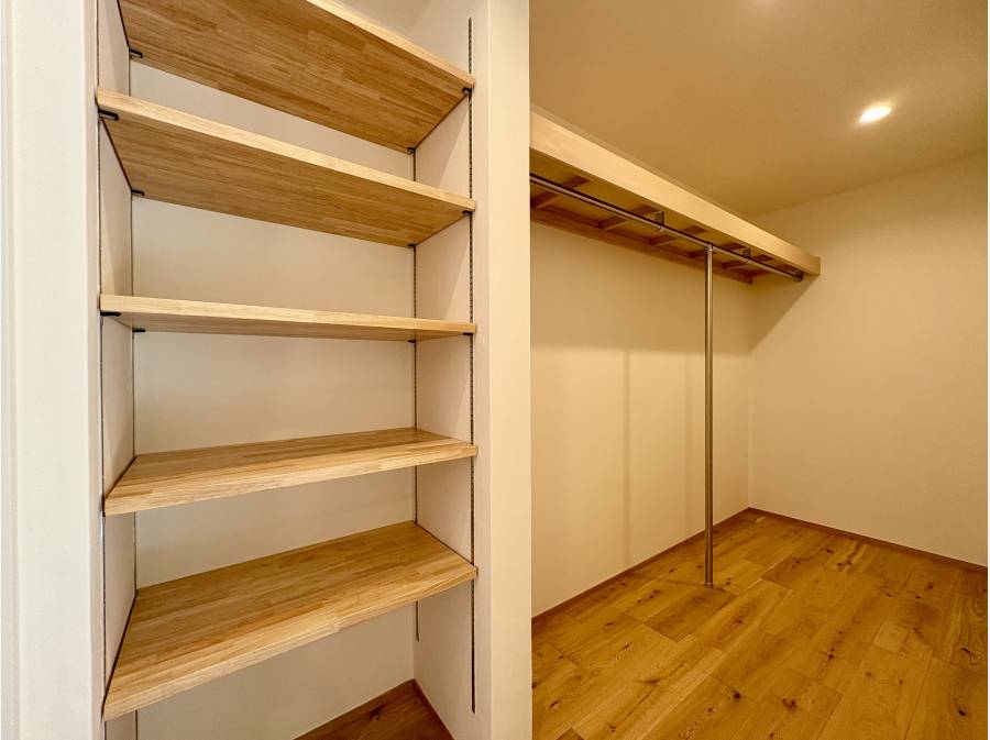 平屋を基調とした間取りは、生活のほとんどを1階で完結するように設計され、シンプルで上質なインテリアが映える、木のぬくもりを感じられる空間です。