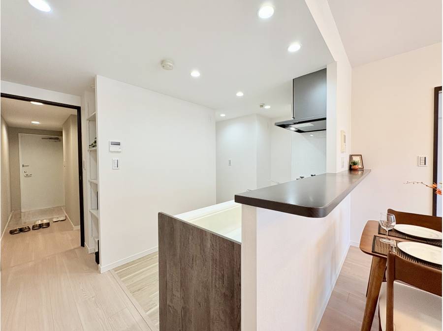 対面式キッチンでご家族との会話を楽しみながら料理ができ、南向きのバルコニーは洗濯物がよく乾きます。
