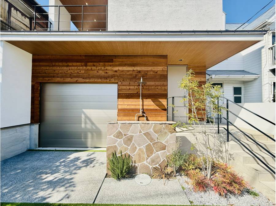 大型ガレージは愛車の保管だけでなく、サーフィンやキャンプ道具の収納、趣味を楽しむスペースとしても活躍します。