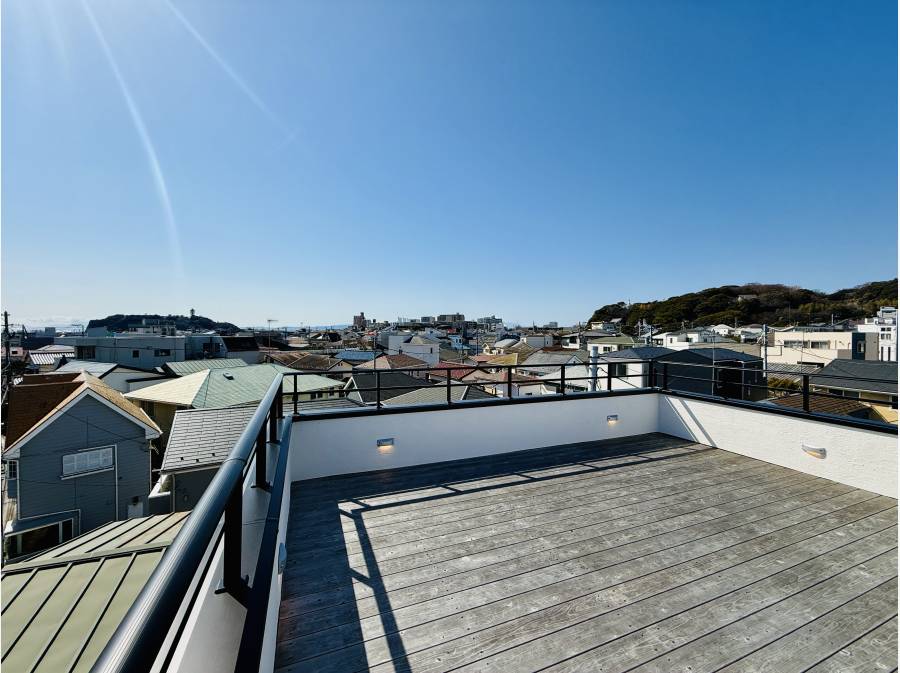 江の島を一望できるスカイテラスと大型ガレージ付き。駅徒歩2分、鎌倉・腰越のデザイナーズ邸宅。