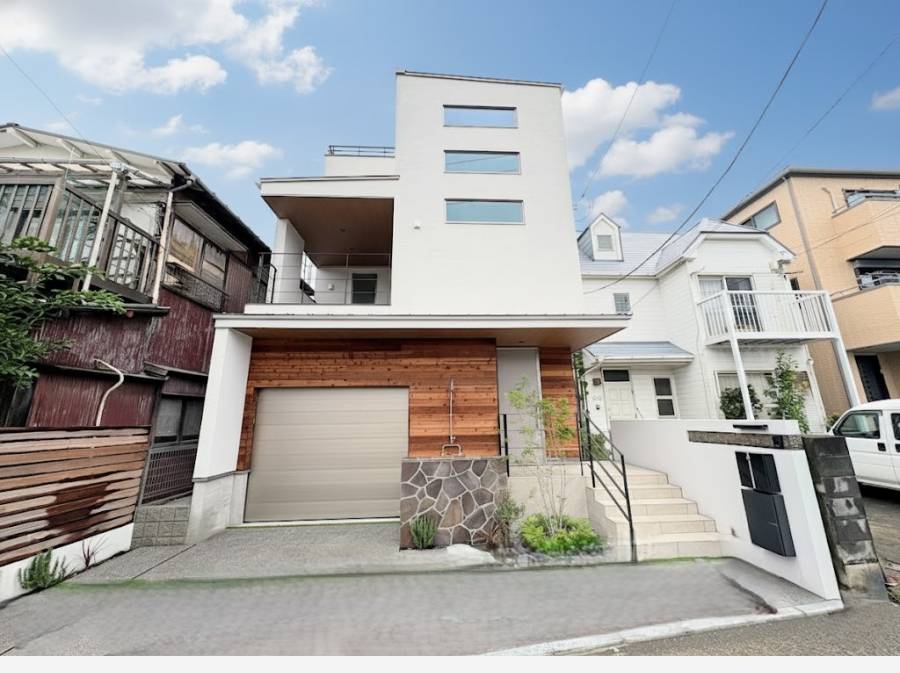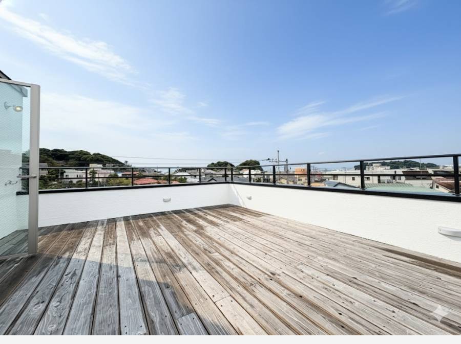 腰越駅徒歩2分、江の島を望むスカイテラス付きガレージ大型邸宅