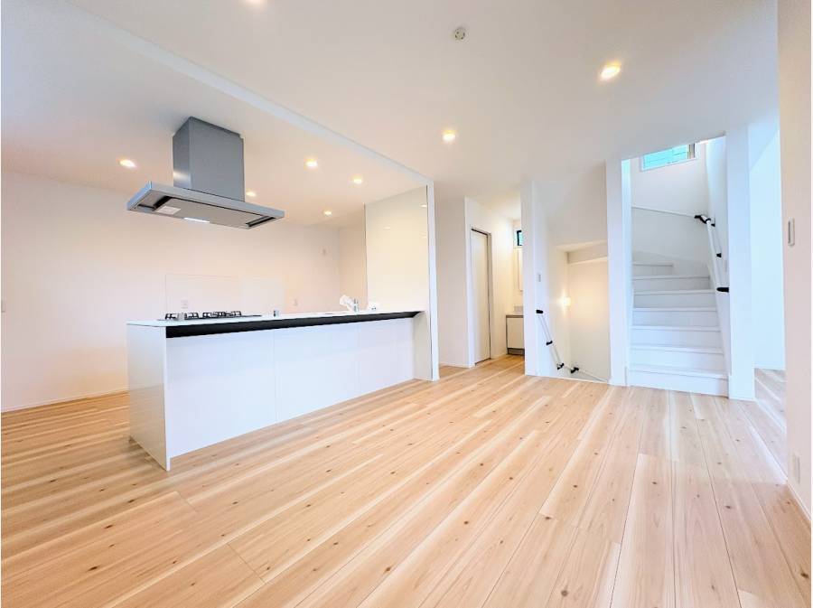 約23帖の広々としたLDKは吹き抜け構造を採用しており、縦方向にも広がりを感じられる開放的な空間です。家族みんなが集う、ゆったりとした時間を過ごせる場所となるでしょう。