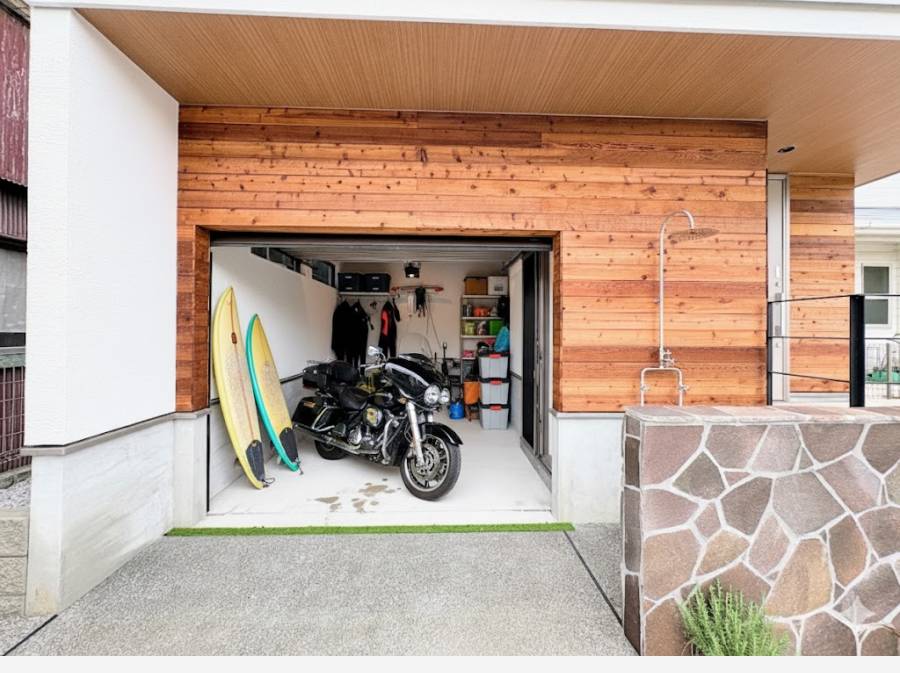 この住まいの魅力の一つは、湘南ならではの贅沢さを体感できる設備です。江の島を眺められるスカイテラスでは、何にも遮られない開放感を楽しみながら、湘南のシンボルを毎日眺めることができます。非日常が日常になる、そんな空間が広がっています。また、ガレージには愛車やバイク、マリンスポーツの道具などを収納できるスペースをしっかり確保しています。