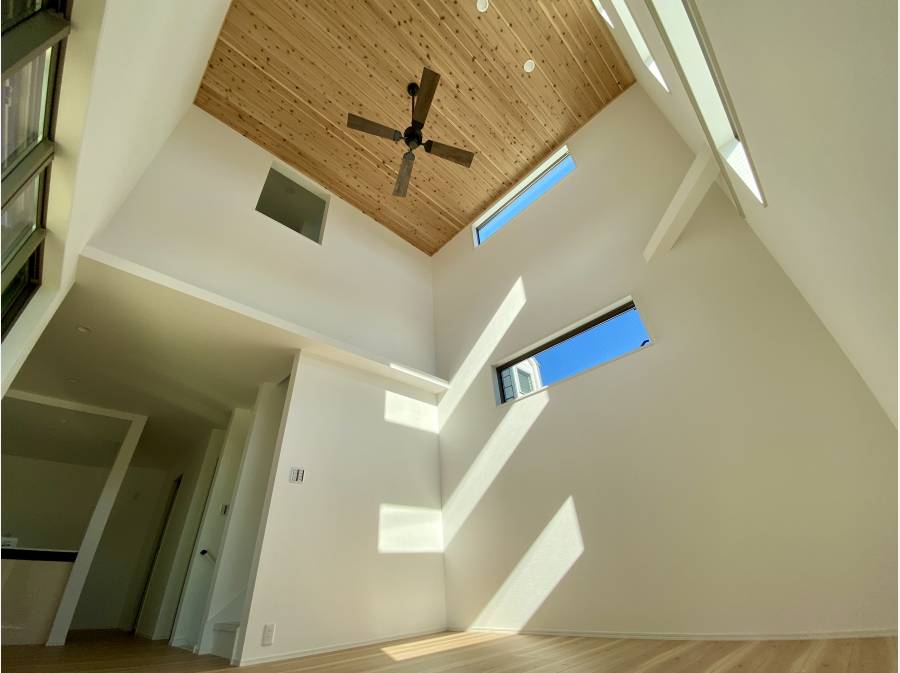 LDKの吹き抜けが開放的で空間の広がりを感じます。