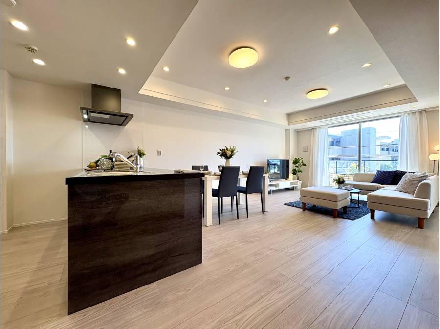 約20.4帖の広々としたLDKは、ご家族みんながゆったり過ごすのにぴったりの開放的な空間。リビングには床暖房が備わっており、寒い季節でも快適な時間をお過ごしいただけます。