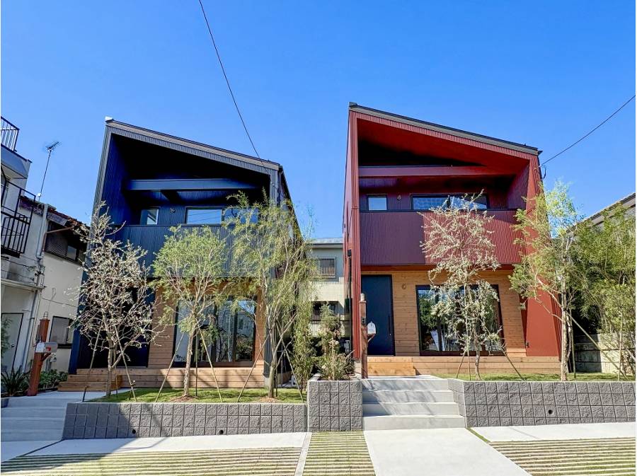 ウッドとガルバリウムのかっこいいファサードが目を惹きます。