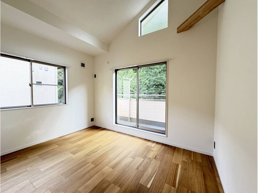 天井を横切る梁が印象的で、家具の配置次第では二部屋として使い分けることも可能です。