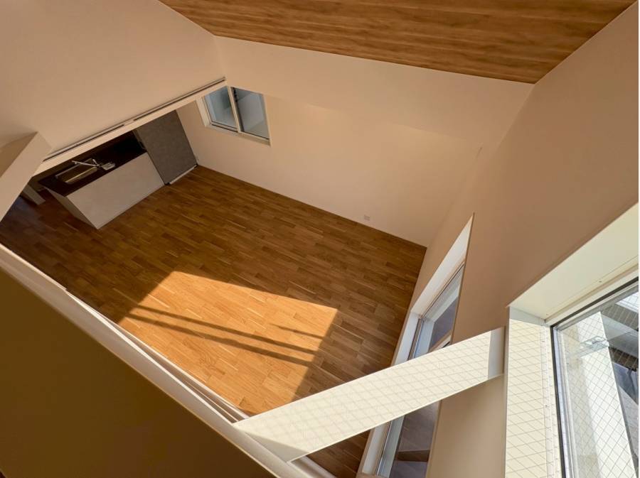 こちらのお家は、プライベート感を大切にした設計で、2階にリビングを配置した点が特徴です。階段を上がると明るく広々としたLDKが広がり、吹き抜けの開放感が魅力的。外からの視線を気にせず、ゆったりとくつろげる空間です。