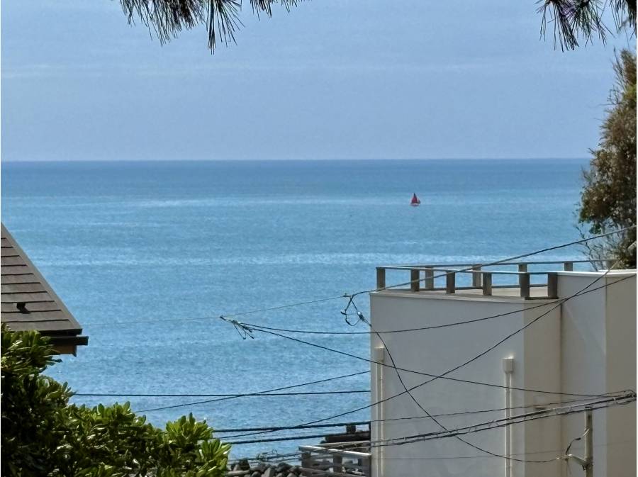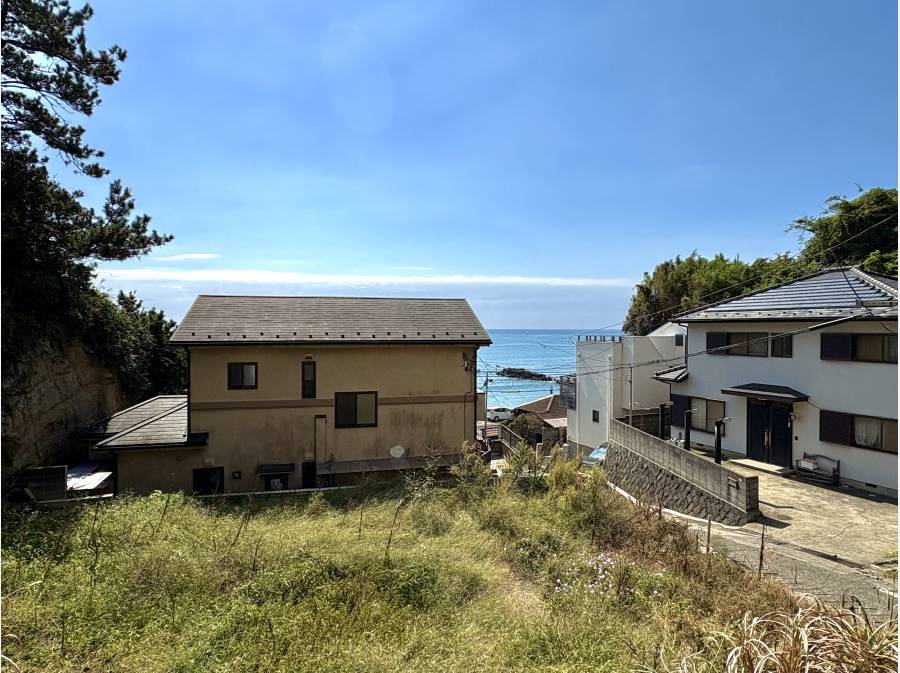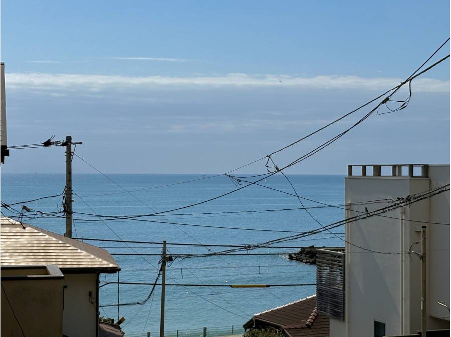 約47坪の広々とした角地は、陽の光と潮風を感じられる開放的な空間。ここからは、きらめく相模湾の水平線を望むことができ、心が癒される眺めが広がります。