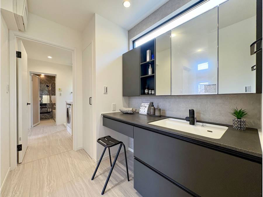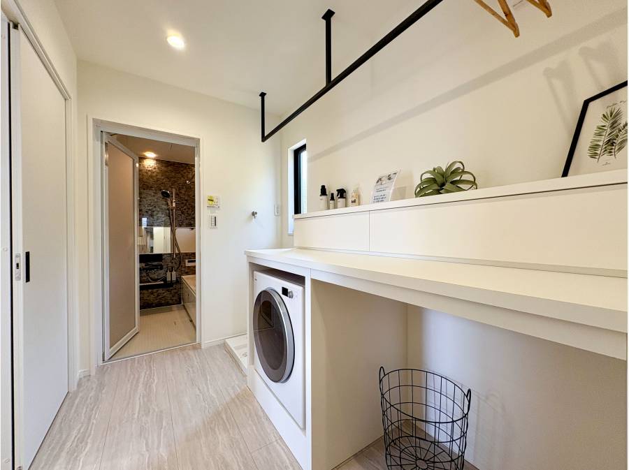 ホテルライクなパウダールームの横には、室内干しもできる広いランドリールームを完備。