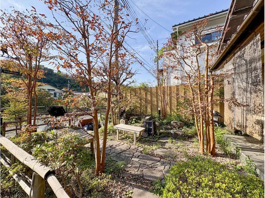 かつては甘味処として永く愛され、アプローチ部分には和の雰囲気溢れる美しい箱庭が広がります。