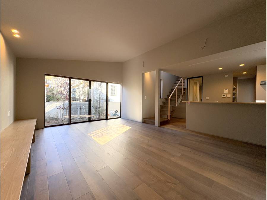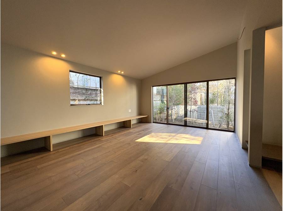 24帖超の広いリビングからは、そのままお庭へ…