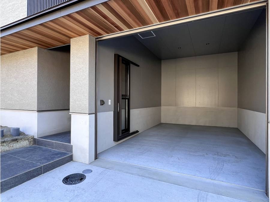 正面のアプローチに加え、ガレージからも直行できる2WAY仕様の玄関は雨の日のお出かけも快適です。