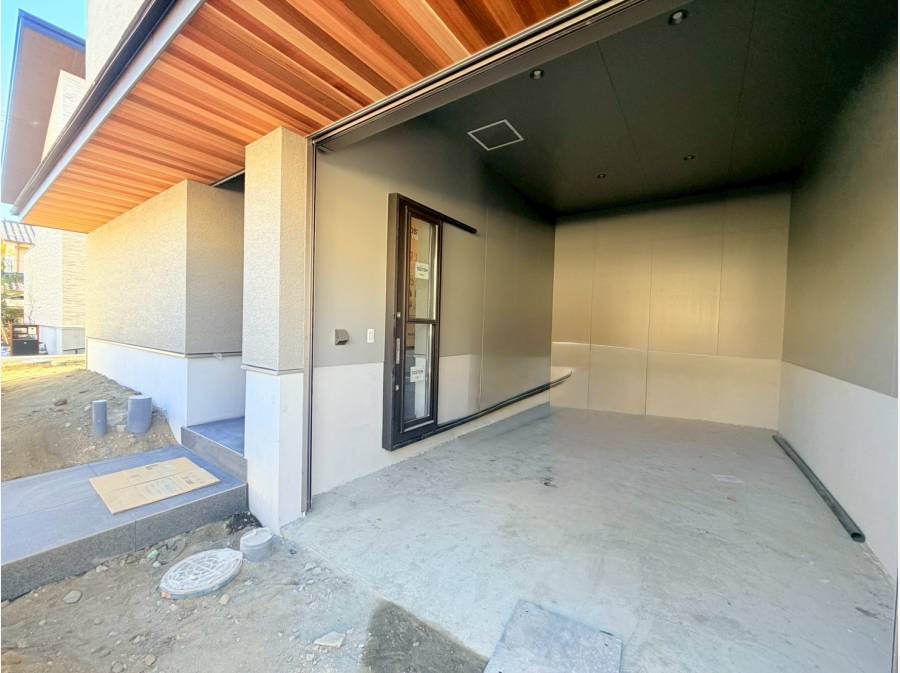 緑豊かな庭とガレージを備えた新築戸建をご紹介します。約64坪の広々とした敷地には、お庭が広がり、ガレージも設けられています。