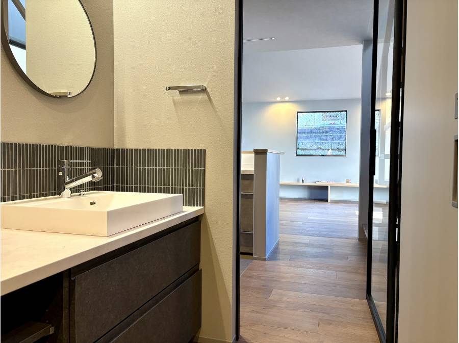 住まいの設計には、素材を吟味して造り込む部分と、日常生活の利便性を考えた既製品を取り入れる部分がバランスよく組み合わされています。その結果、機能性とデザイン性が調和した住まいが実現しています。