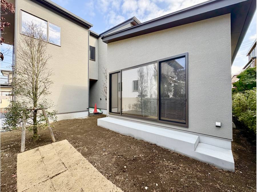 約64坪の広大な敷地を活かし、大切な愛車を守るビルトインガレージと、四季折々の彩りを楽しめる専用庭が魅力です。広々としたリビングは24帖以上の大空間で、窓から見える庭の緑と心地よくつながる設計となっています。