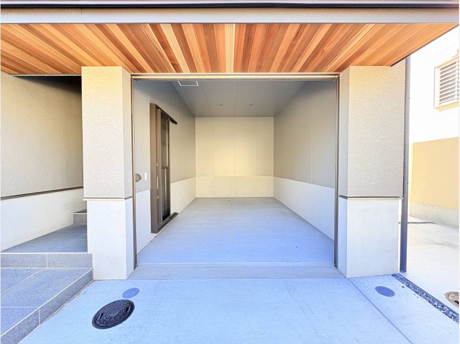 約11.0帖の広さを持つビルトインガレージは、大切な愛車を雨風から守るだけでなく、趣味のメンテナンススペースとしても活用可能です。車好きの方には特におすすめです。
