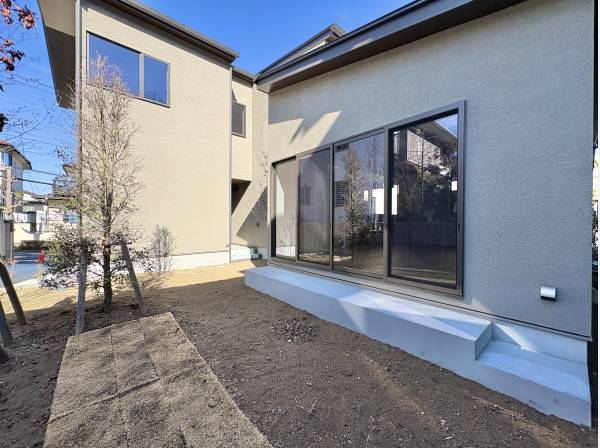 リビングの窓を開けると、室内とお庭が一体となり、開放感あふれる空間が生まれます。