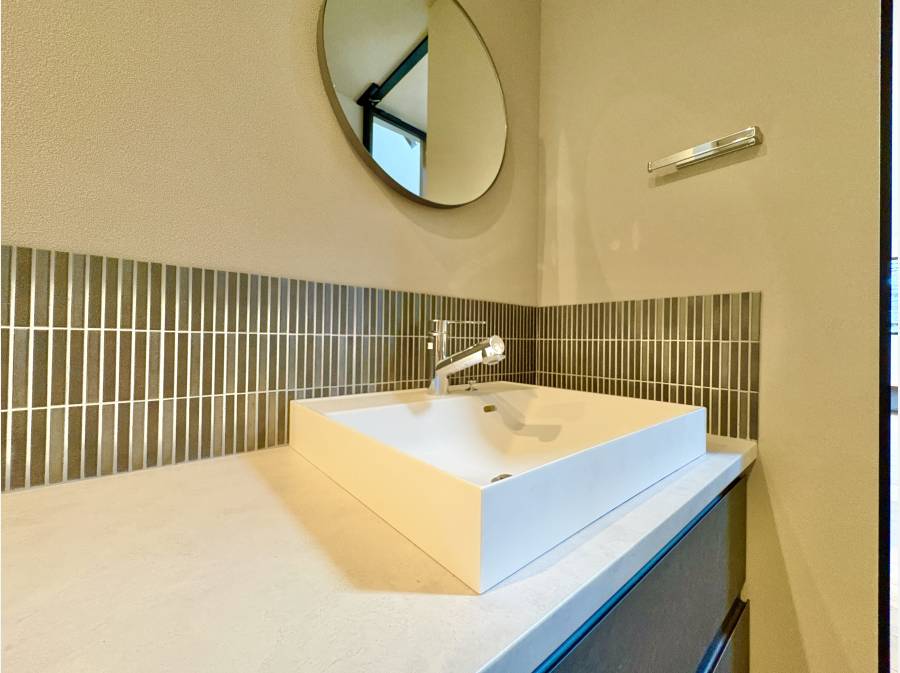 また、造作の洗面化粧台には彩り豊かなタイルを使用し、センスが光る仕上がりに。