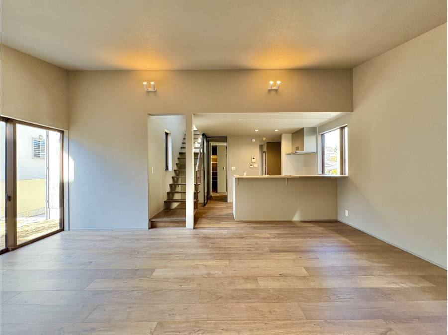 24帖の広々としたLDKには大きな窓があり、その先にはのんびりと過ごせる大きなお庭が広がります。
