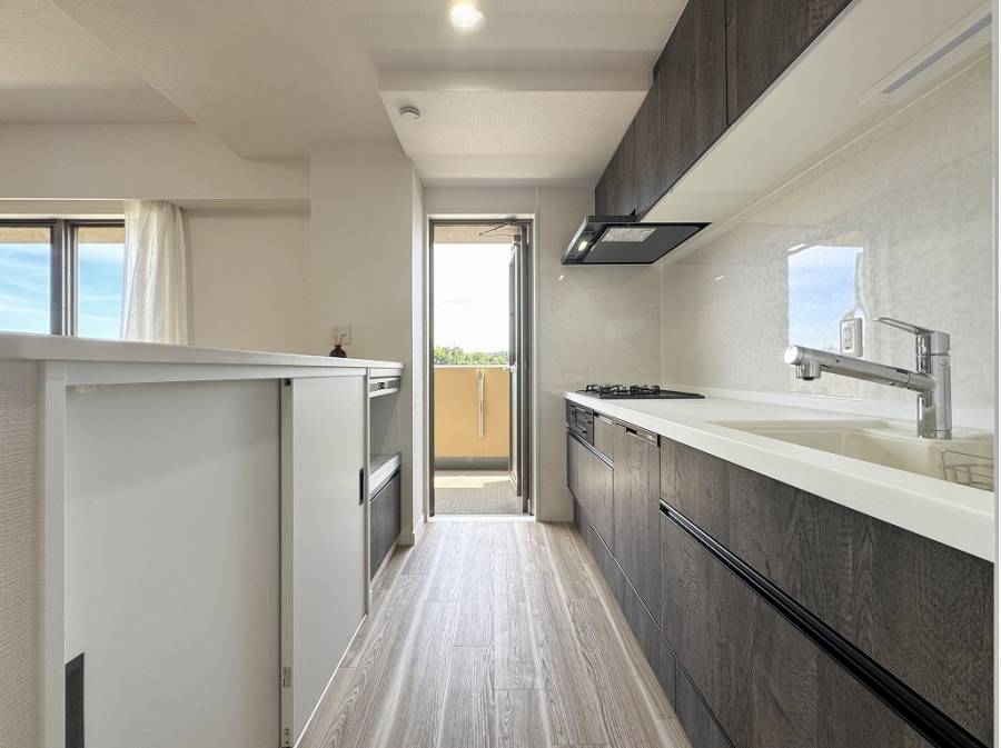 キッチンのカウンターは収納力に優れ、広々とした作業台としても重宝するでしょう。