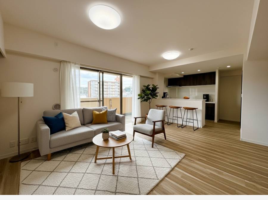 お部屋は3LDKで、約17.2帖の広々としたリビングが特徴。家族が自然と集まりたくなるような、心地よい空間が広がっています。