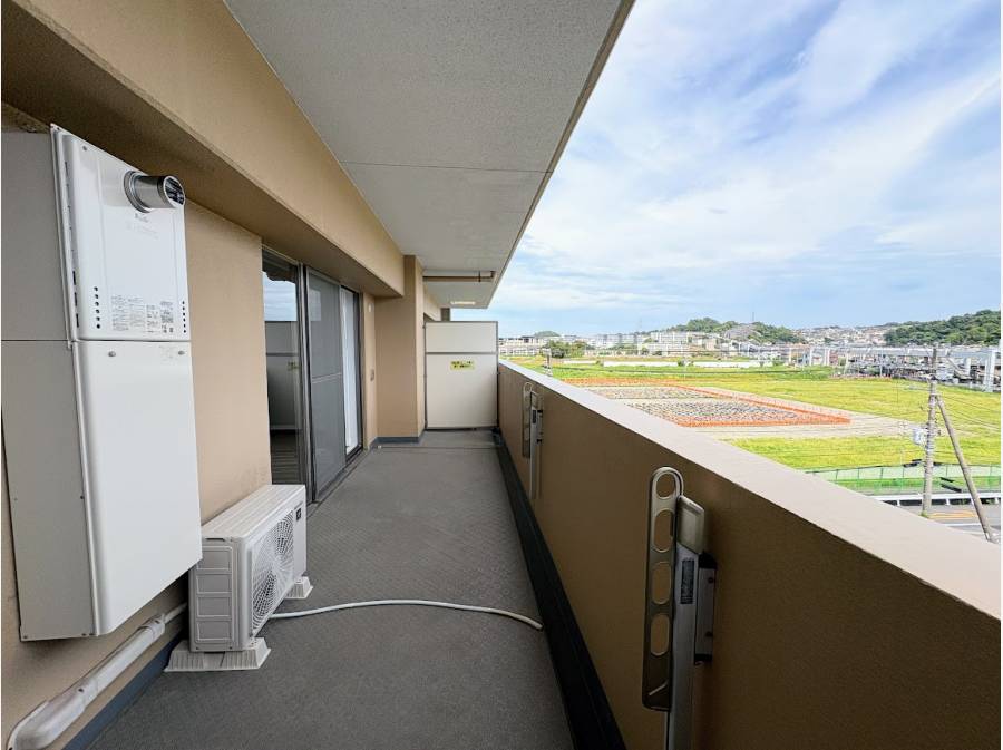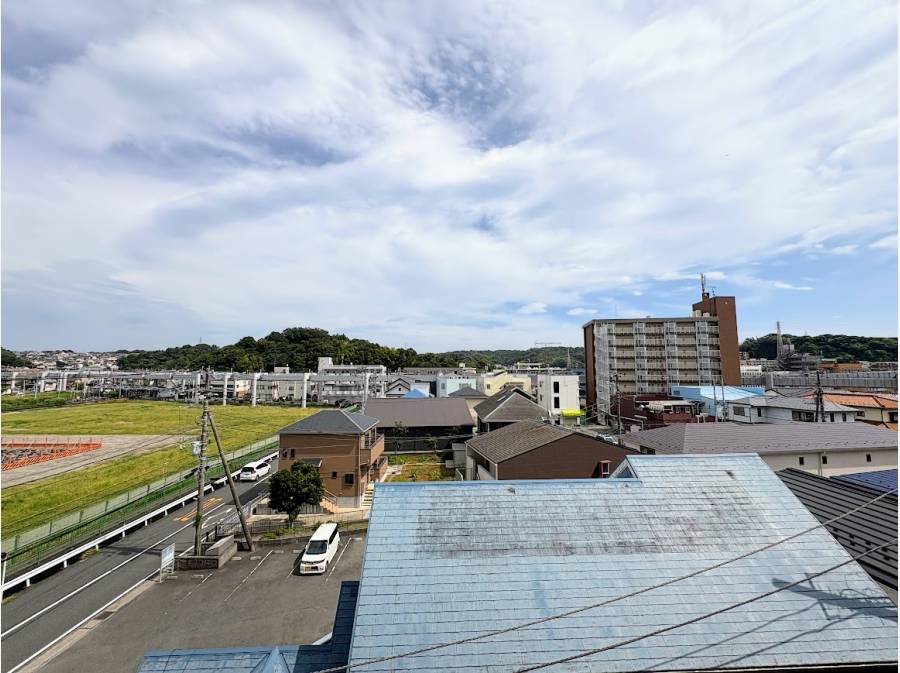 4階のバルコニーからは、開放的な眺望が広がり、澄んだ青空や鎌倉の豊かな緑を楽しめます。日当たりも良好で、心地よい光が日々の暮らしを彩ります。