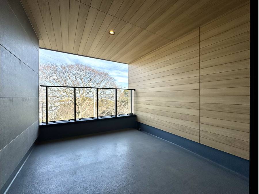 鎌倉山の落ち着いた街並みに、凛とした存在感を放つモノトーンの外観。無機質な素材感に、木の温もりを差し込んだデザインが“静かにかっこいい”一邸です。