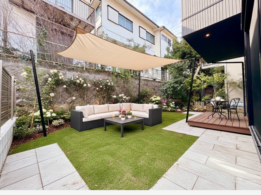 外には鎌倉らしい情緒を感じる庭が広がっており、ウッドデッキを設置することで四季の移ろいを楽しみながらくつろげます。
