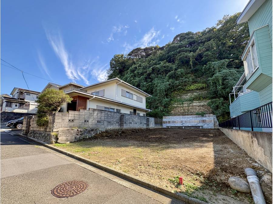 378.55㎡(約114坪)の広大な敷地のうち約185㎡が傾斜地、つまり敷地の後方に山があります。