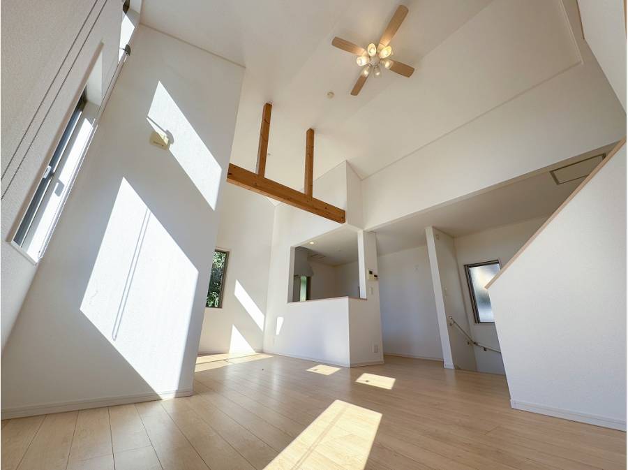 開放感溢れる吹抜けリビングはカジュアルなチャペルのような雰囲気。