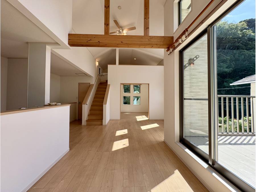 室内は、明るい陽光が差し込む約17.8帖の広々としたLDKが家族の時間を優しく包み込みます。