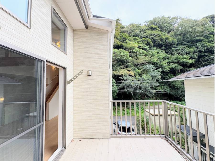 開放感あるLDKと、そこから続くバルコニーからは、周囲の自然や街並みを望むことができ、日々の暮らしの中で鎌倉の情緒を楽しむことができます。