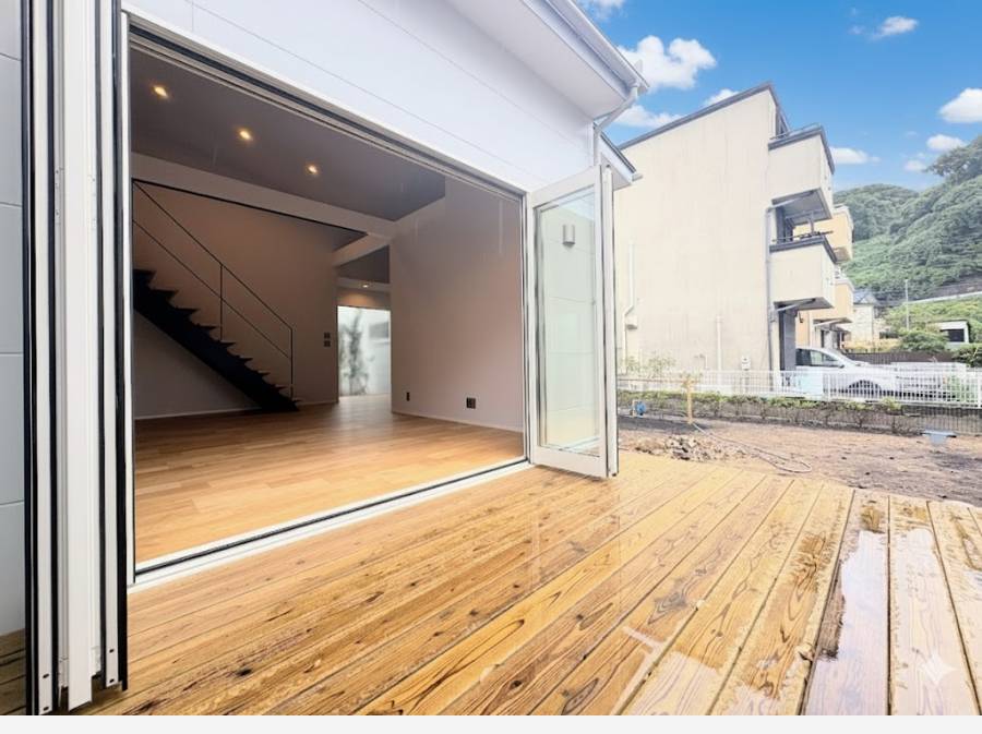 平屋邸宅、西鎌倉駅徒歩3分。LDKとウッドテラスが空と一体に。
