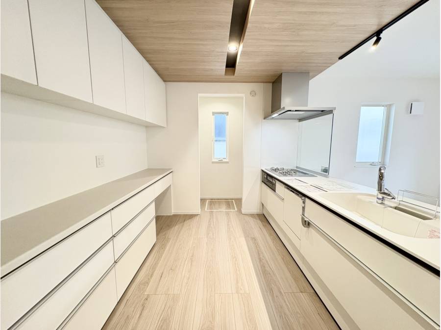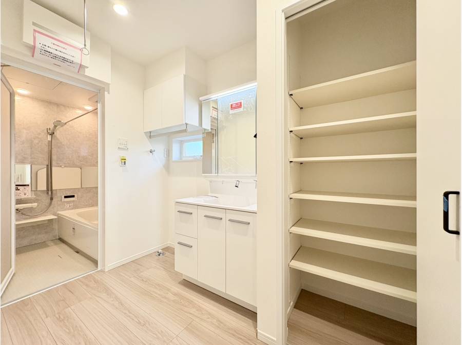 キッチンスペースにはパントリーとカップボードもございますので、食品やキッチン用品もスッキリまとめられます