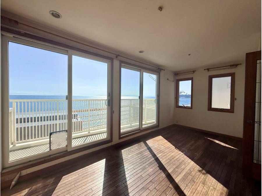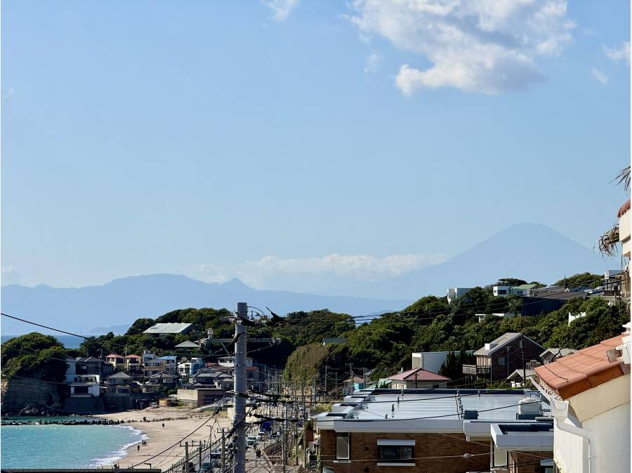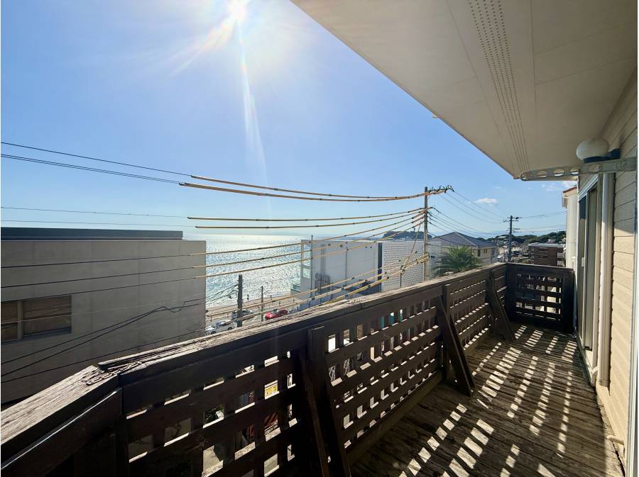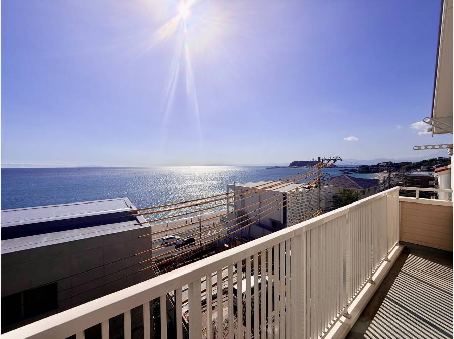 鎌倉市七里ガ浜の別荘地にあるこの物件は、海から2列目の立地で、目の前に広がる海の眺望が楽しめます。