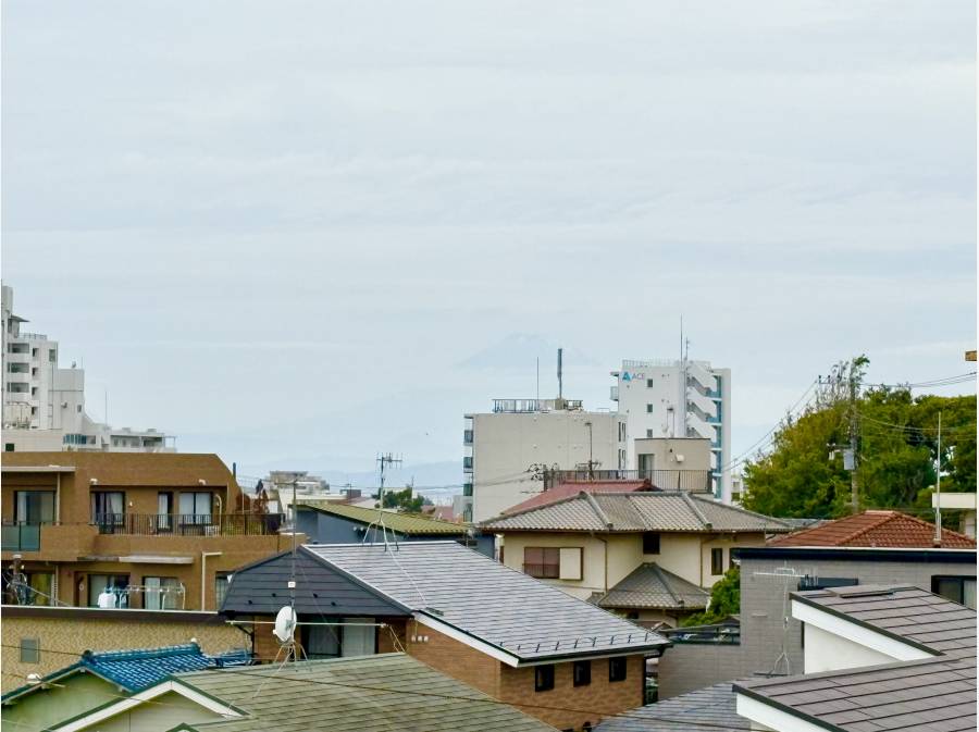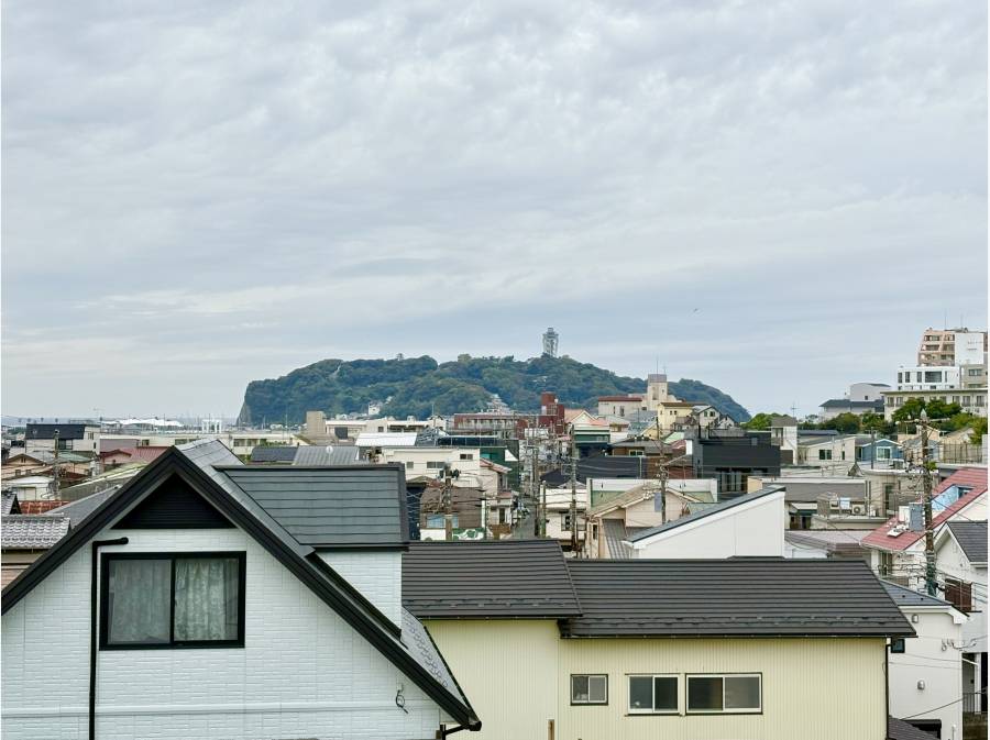 この物件の魅力のひとつは、広々としたルーフバルコニー。そこからは、江の島に昇る朝日や、夕日に染まる富士山、夜には星がきらめく空まで、息をのむようなパノラマビューが広がります。
