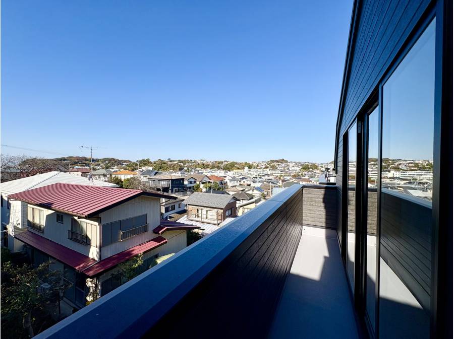バルコニーが2カ所あるため、洗濯物を干す場所を季節や時間帯に応じて選べるのも便利です。さらに高台に位置しているため、鎌倉の自然や街並みを楽しむ眺めも魅力のひとつです。