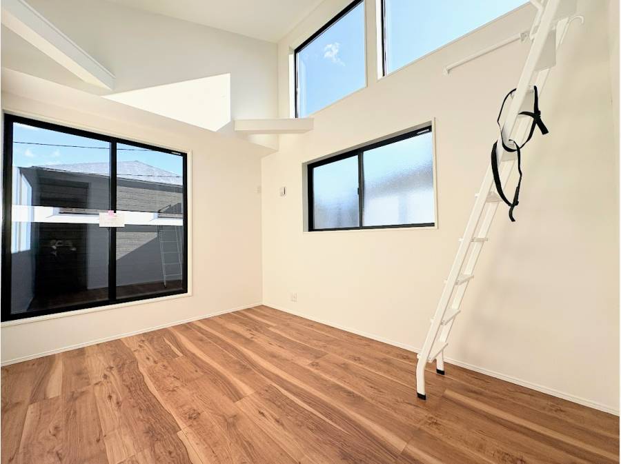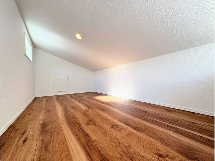 主寝室は勾配天井を採用し、高さを感じるデザインが魅力的。ロフト付きで実用性も高く、柔らかな光に包まれた朝を迎えられる心地よい空間です。