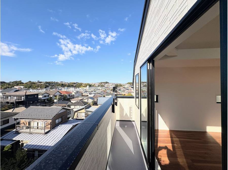 バルコニーからは、鎌倉の緑豊かな景色や街並みを一望でき、高台ならではの広がる空が楽しめます。