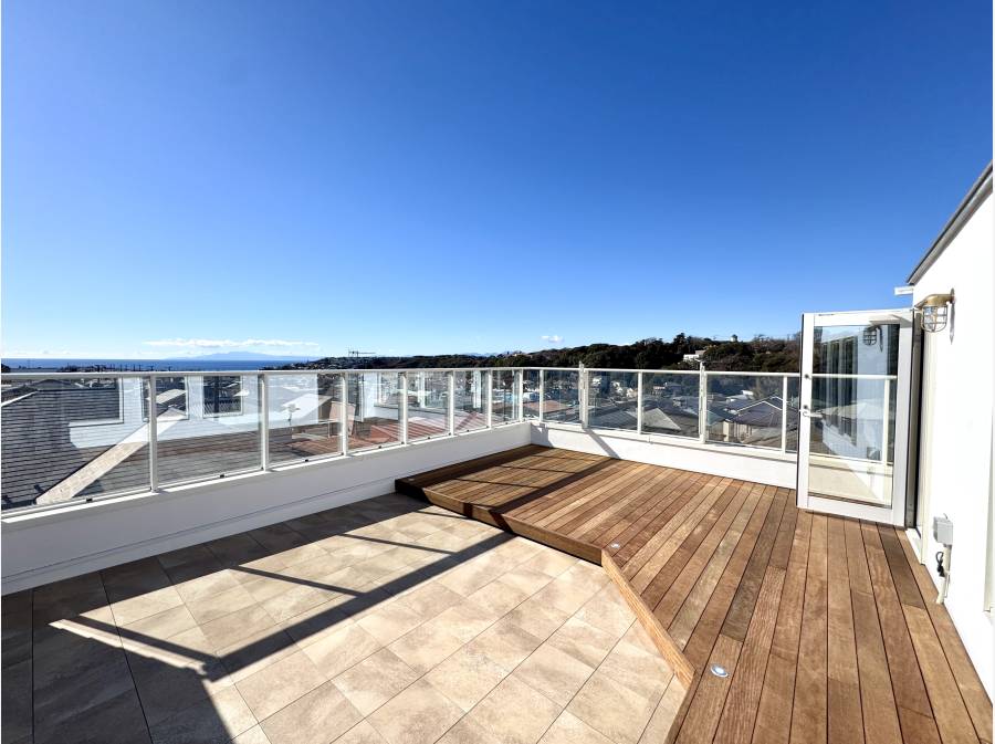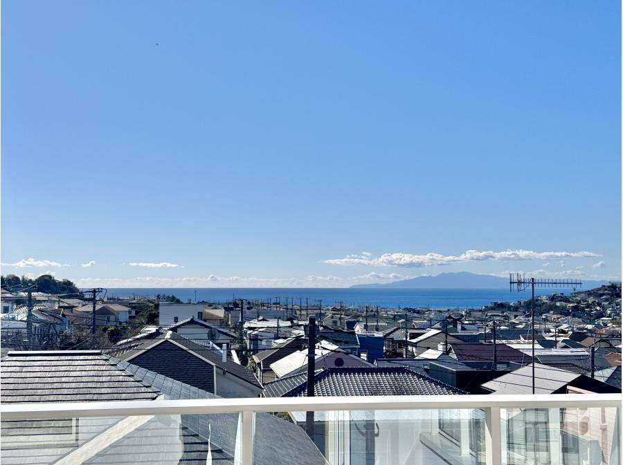 窓の外には、七里ガ浜の海を望む圧巻のオーシャンビュー。プライベートなルーフバルコニーで、遮るもののない景色を独り占めする贅沢な時間をお過ごしいただけます。