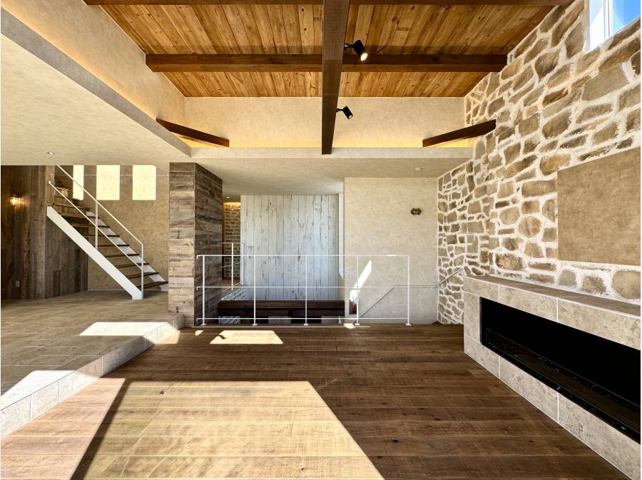冬には暖炉の炎や床暖房で、空間に温かみを与えます。