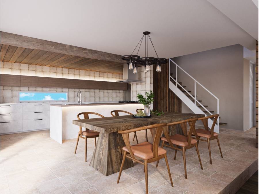 中心にはキッチンハウス社製の洗練されたアイランドキッチンを設置。暖炉や床暖房が冬の寒さを和らげ、心地よい暖かさを提供します。