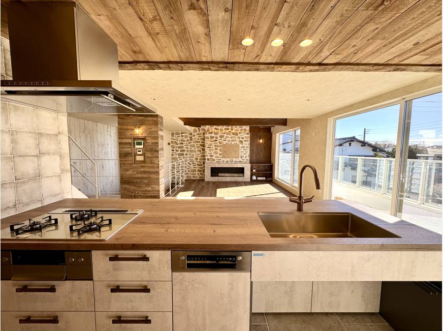 LDKの中心には、キッチンハウス社製の美しいアイランドキッチンを配置。