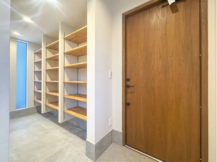 奥行きのあるシューズインクロークがどーんと伸びた玄関スペース。