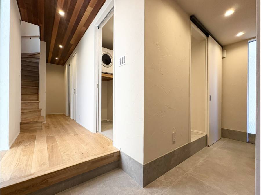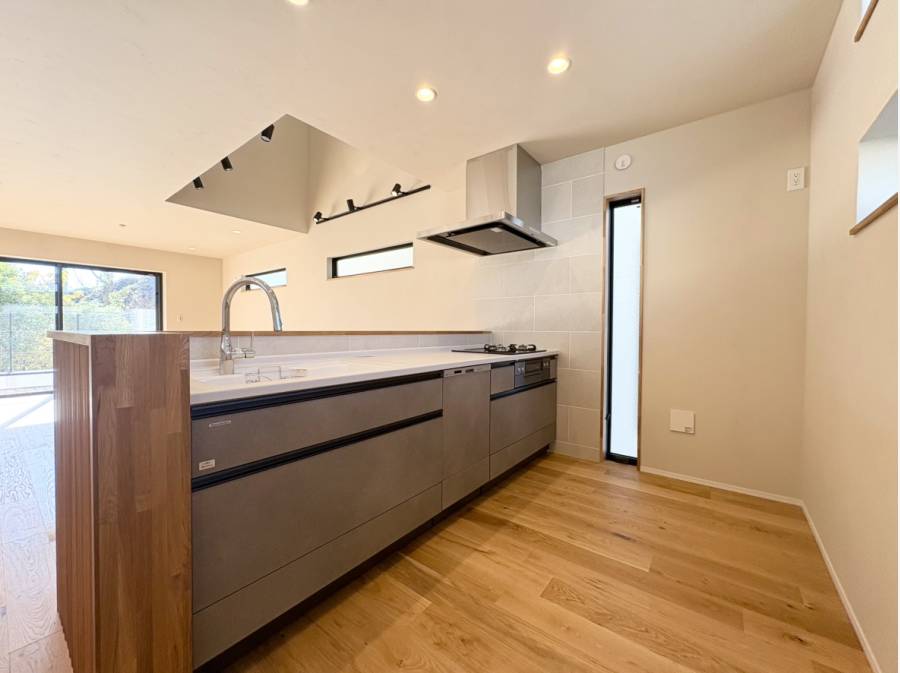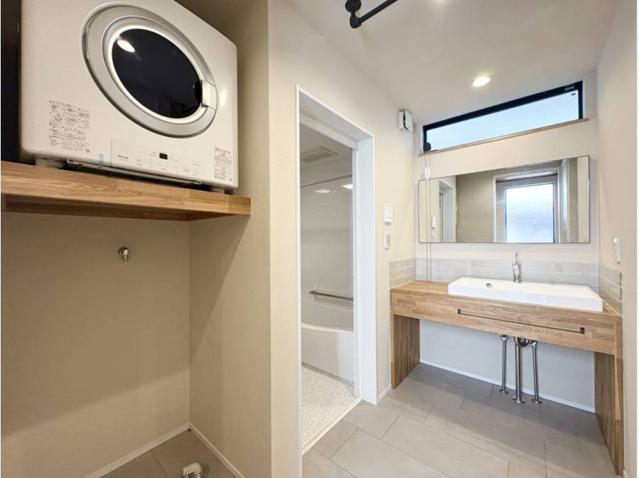 地元工務店が手掛けた、一般的な建売には無いお洒落な造作洗面台や天然素材100%の塗り壁「エコウォール」などを採用した本邸宅。